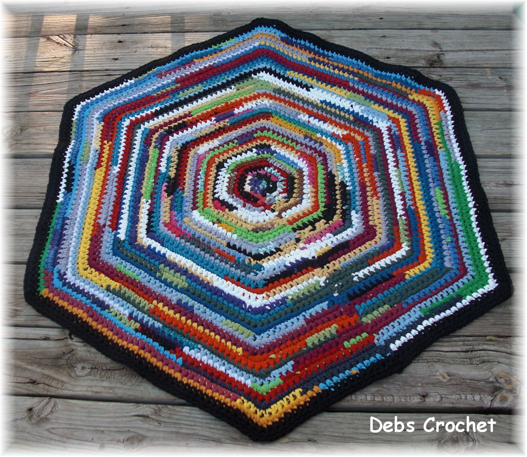 Just finished up another hexagon rag rug. It measures approx 44 inches across at the widest points. I crocheted it using t shirts. Now available in my Etsy shop